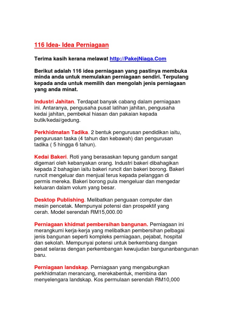 Kertas Kerja Perniagaan 116 Idea Idea Perniagaan Hebat Pdf
